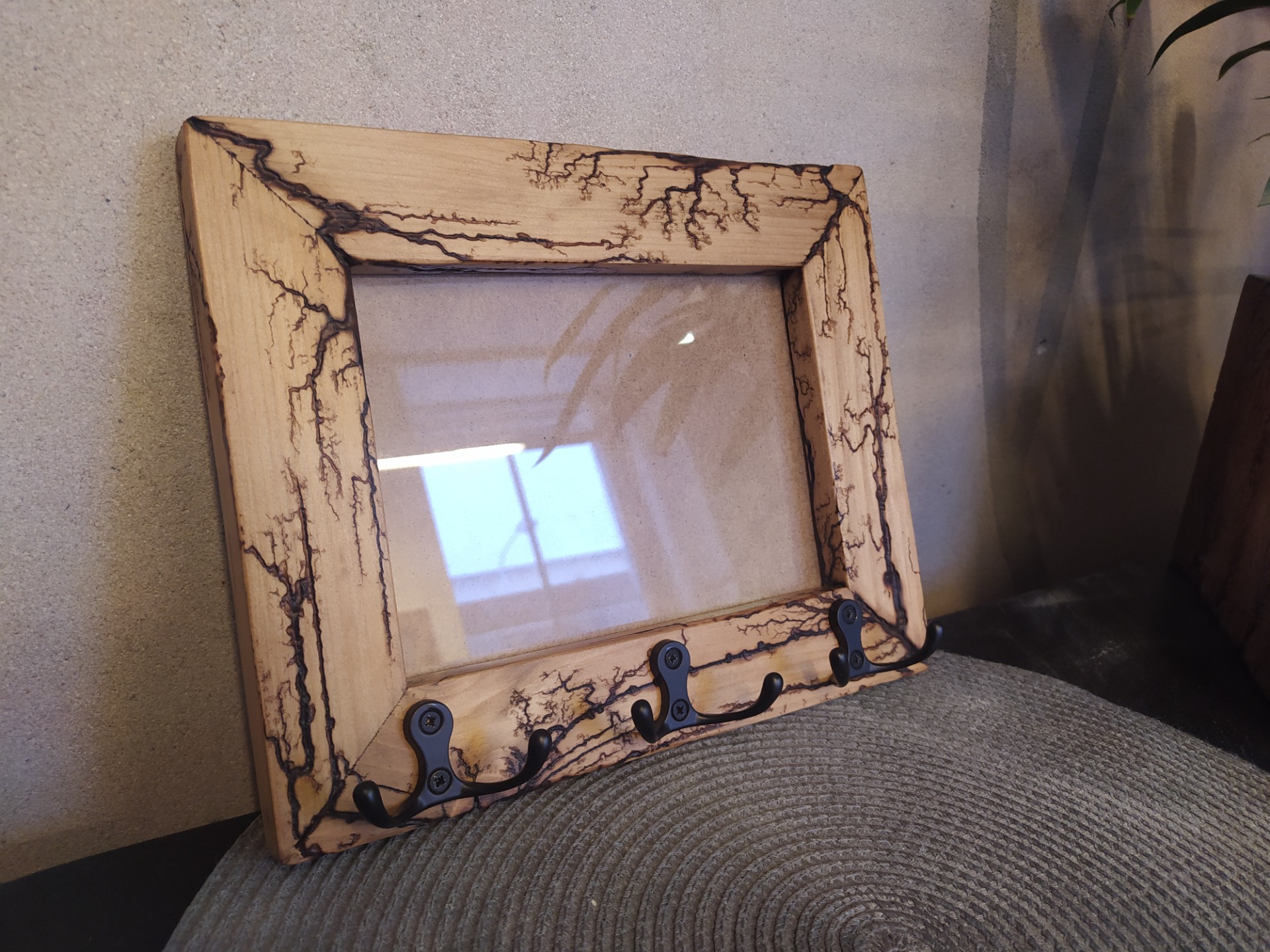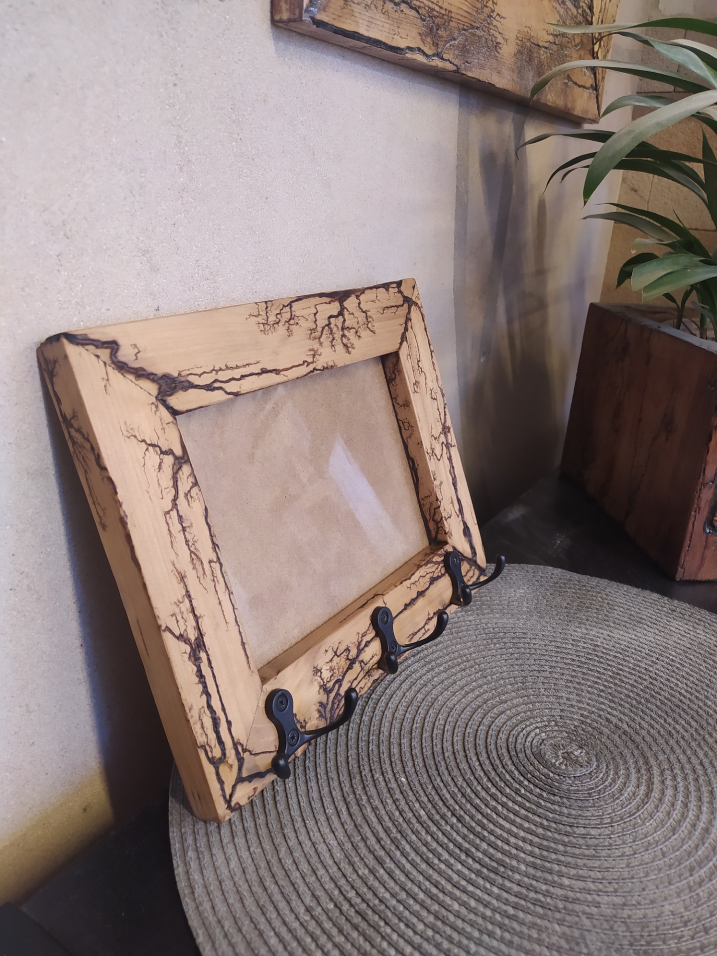 Dřevěný fotorámeček na fotky, obrázky s možností zavěšení klíčů a dalších dekorací.