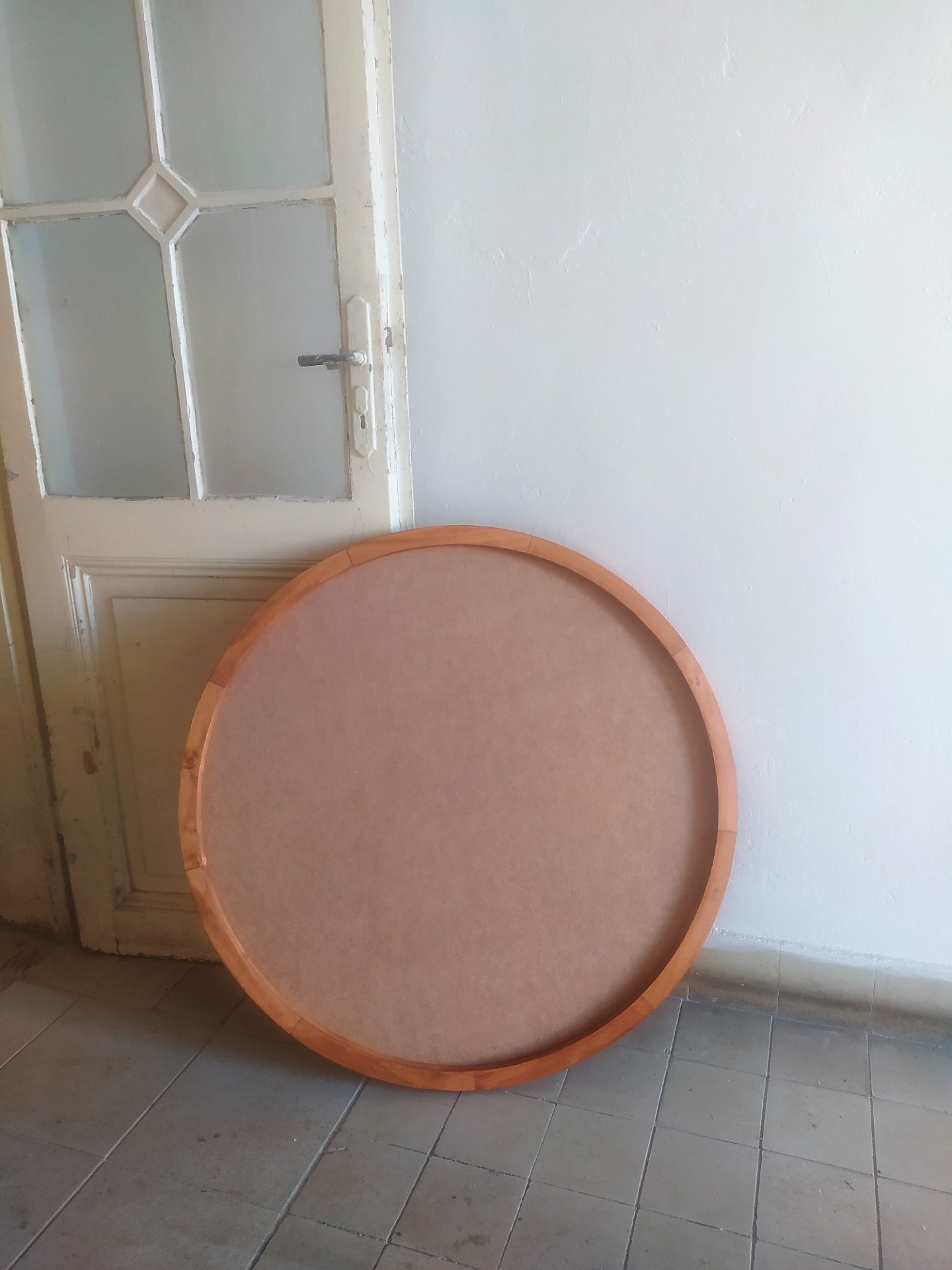 Dřevěný kulatý rám z masivu vyrobený na mechový obraz nebo jiné kreativní tvoření.