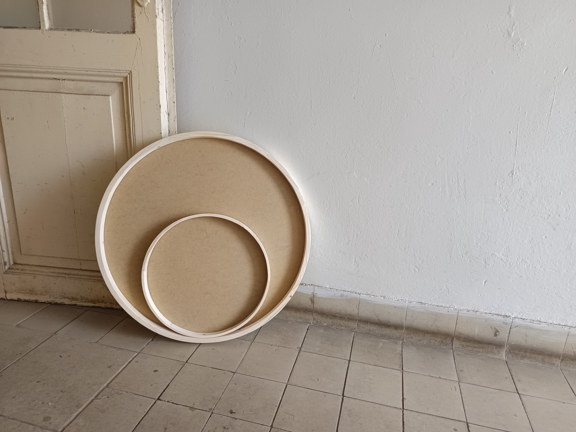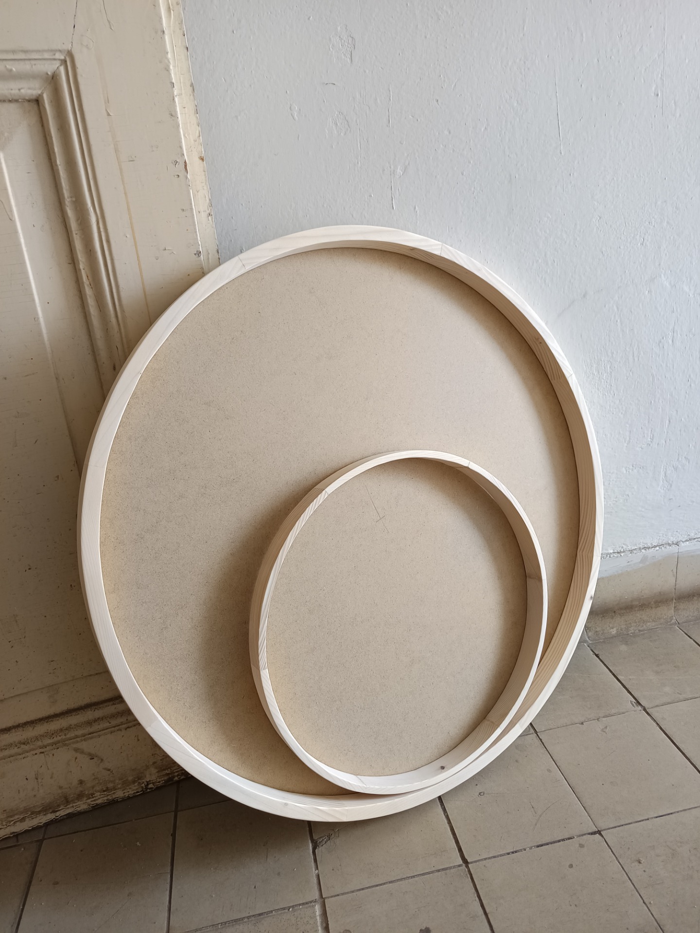 Dřevěný SET kulatých rámů z masivu vyrobený na mechový obraz nebo jiné kreativní tvoření.