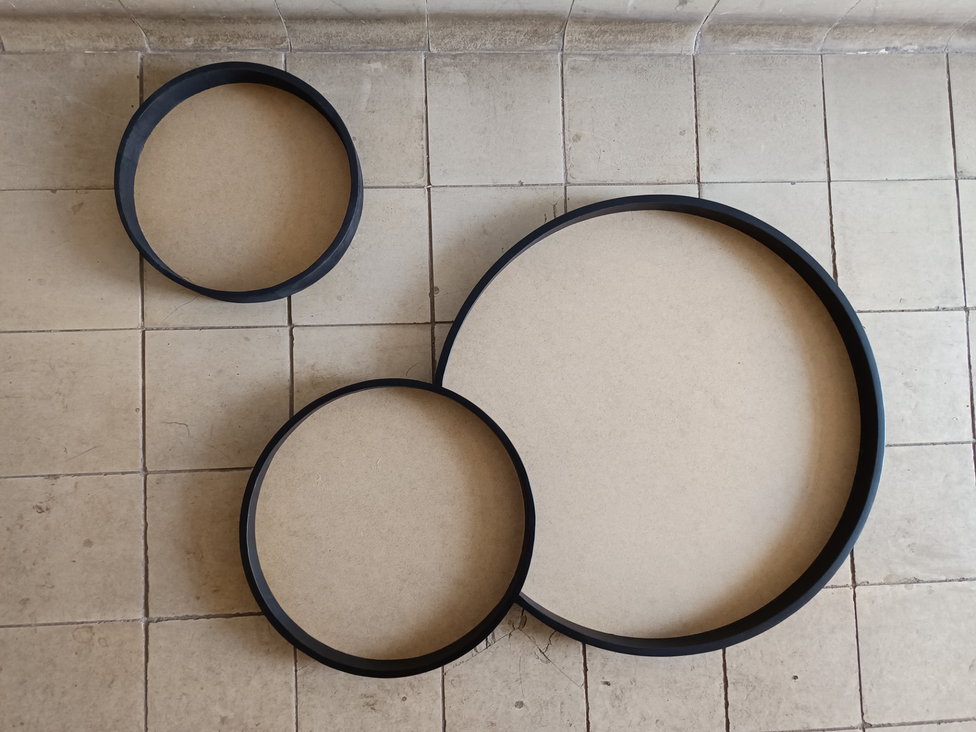 Dřevěný SET kulatých rámů z masivu vyrobený na mechový obraz nebo jiné kreativní tvoření.