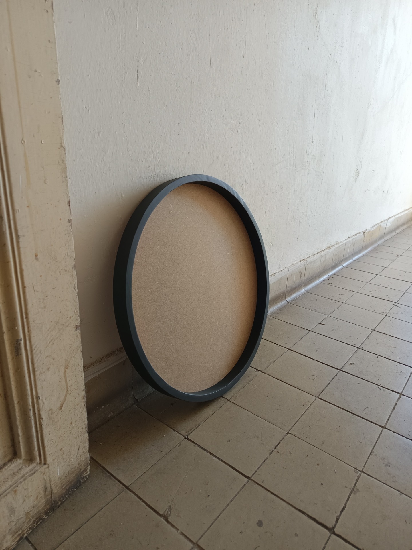Dřevěný kulatý rám z masivu vyrobený na mechový obraz nebo jiné kreativní tvoření.