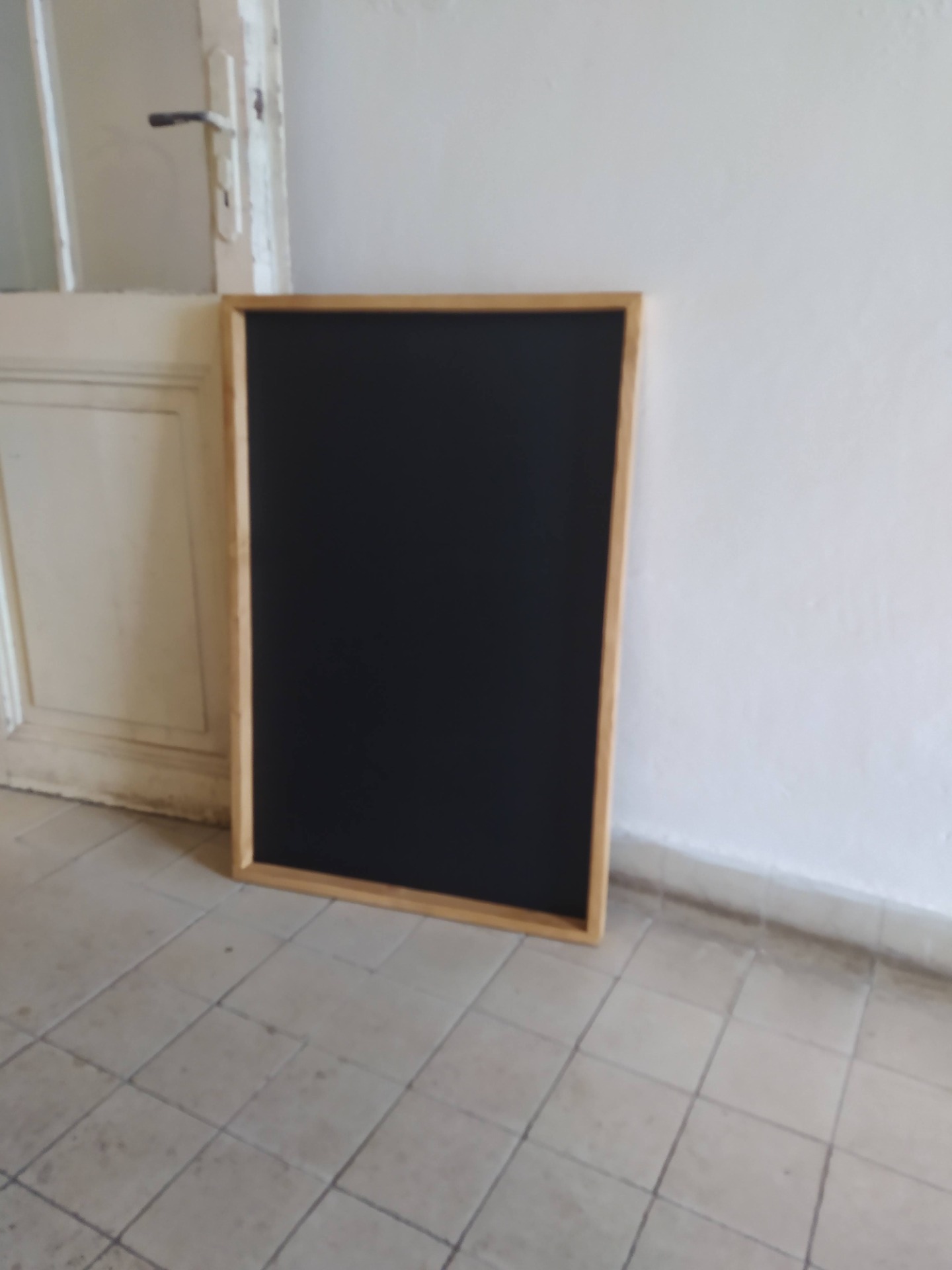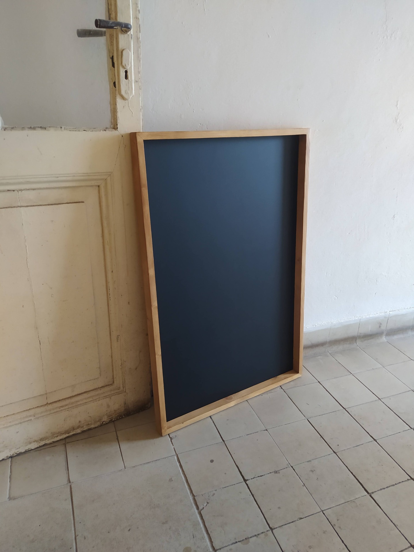 Popisovací, vodou omyvatelná tabule v dřevěném rámu širokém 2cm. Lze na ni psát křídou nebo křídovým fixem. Nejedná se o tabulový nátěr, avšak o popisovatelnou folii!