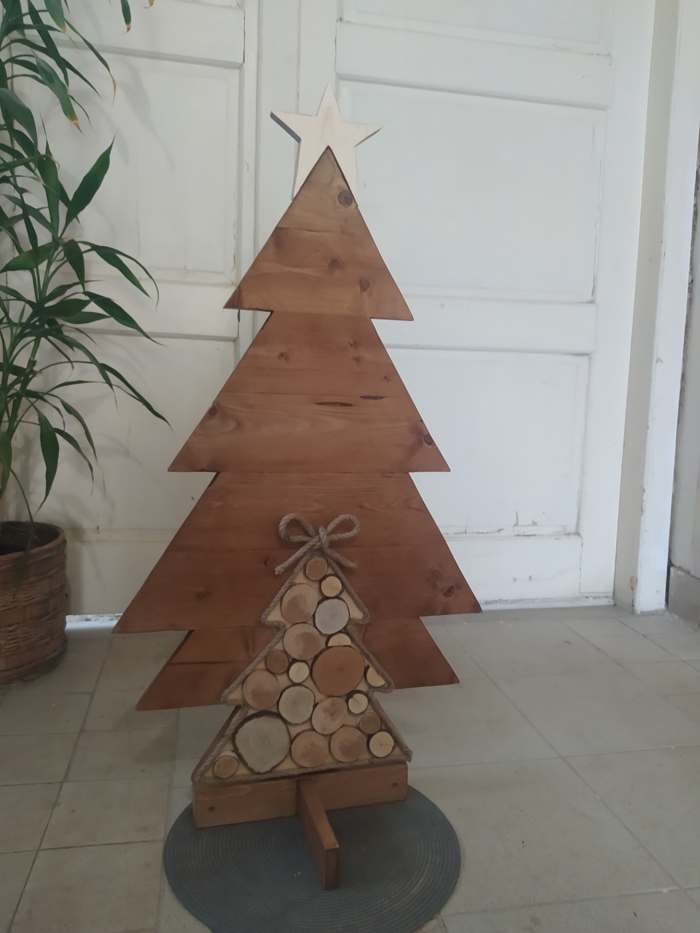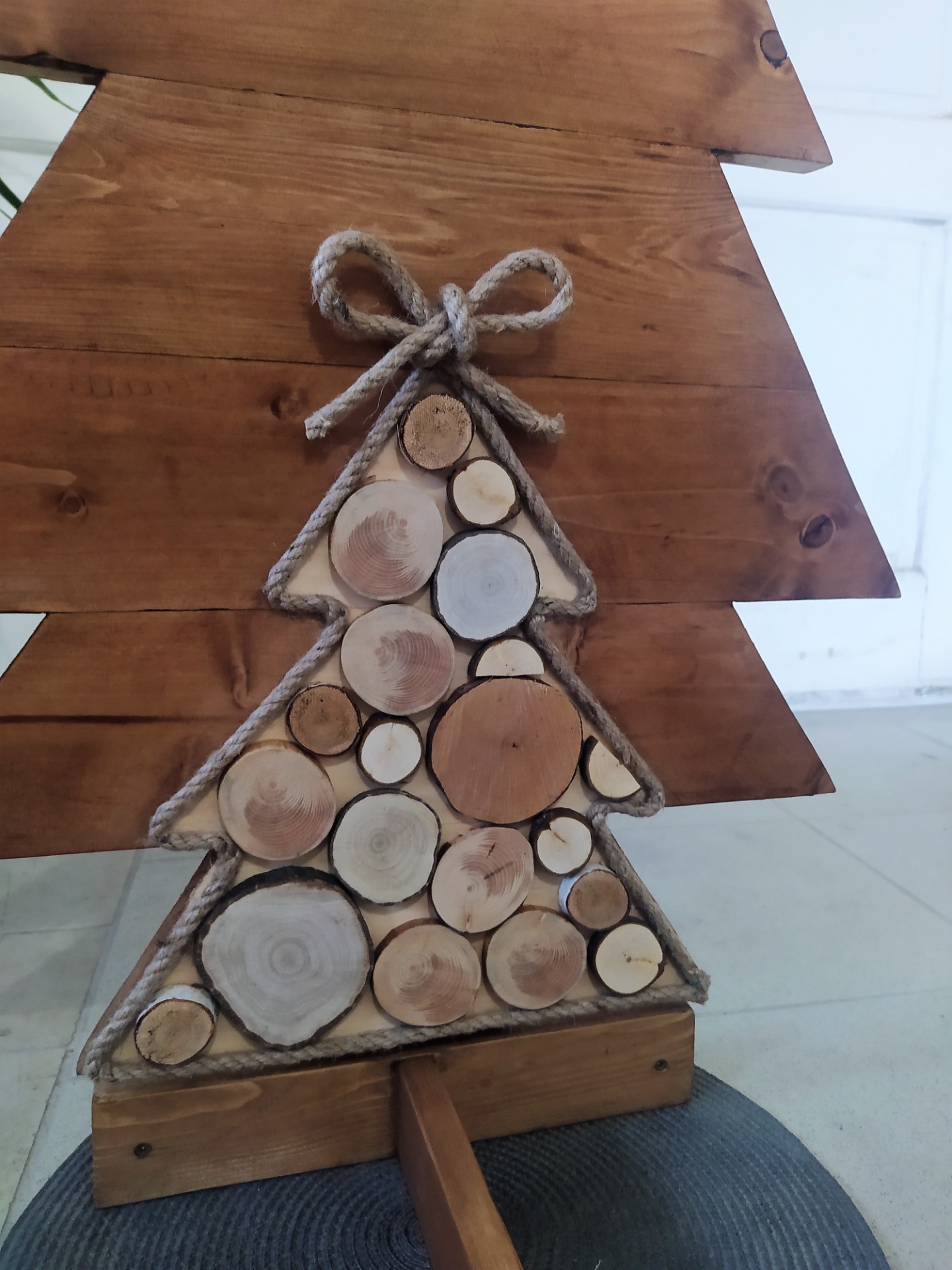 Originání dřevěný stromek, který je ozdoben kulatinou a jutovým provazem. Je doplněn stojánkem, který zajistí dobrou stabilitu. Dodáváme stojánek zvlášť, stačí pak pouze strom do stojánku postavit. Vhodný do interiéru.